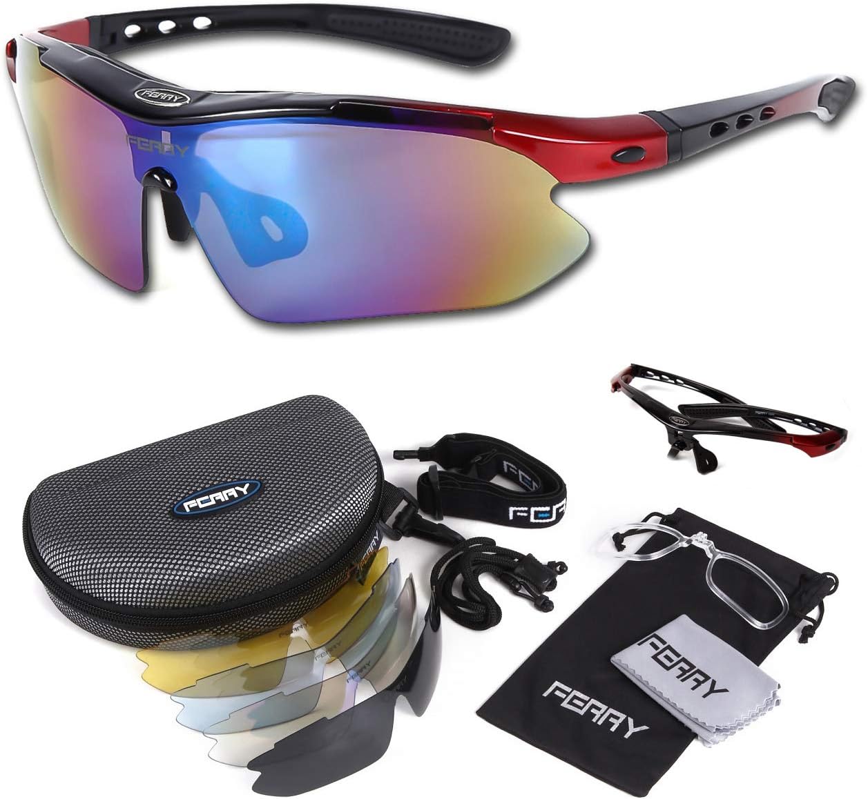おすすめポイントは専用ポーチに交換用のサングラスが5枚入っています。それぞれ用途が違うレンズになります。